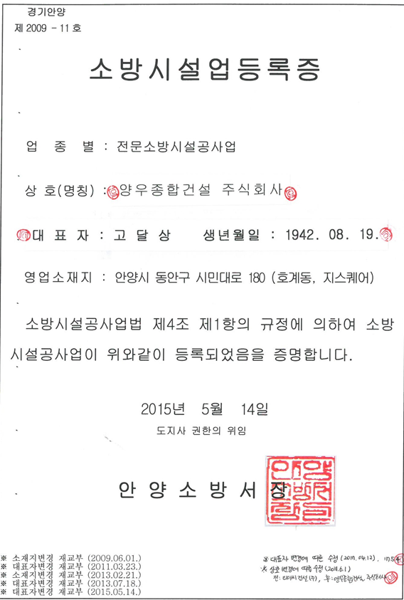 업종 : 전문소방시설공사업